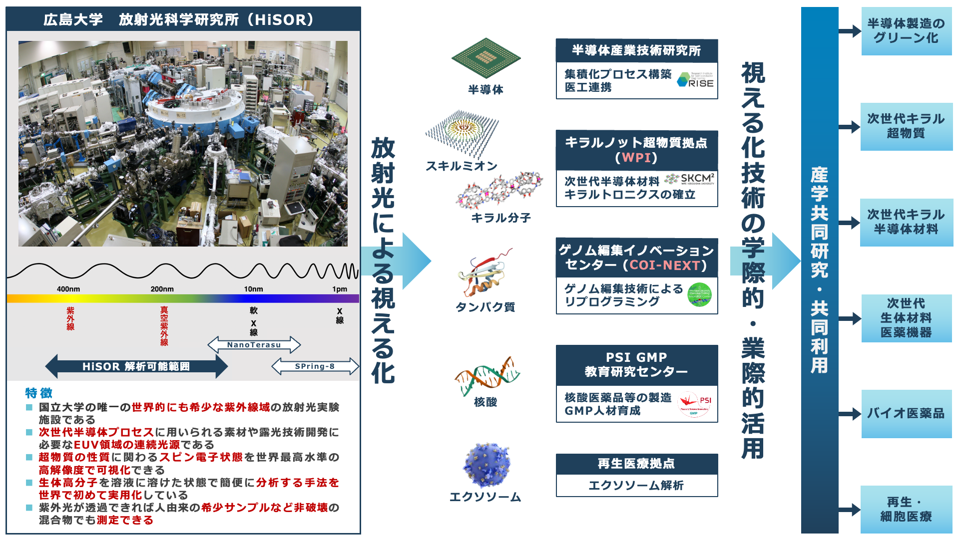 広島大学は、文部科学省の令和5年度「地域中核・特色ある研究大学強化促進事業」に採択され、「放射光による物質の視える化技術を核とした半導体・超物質及びバイオ領域融合型産業集積エコシステムの実現」に取り組んでいます。