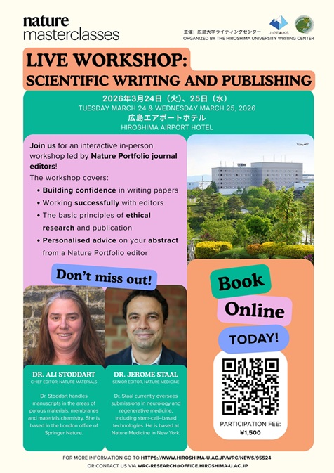 We are pleased to announce the upcoming Nature Masterclasses Live Editor Workshop on scientific manuscript writing and publication, as detailed below. This two-day hands-on program offers a valuable opportunity to learn directly from journal editors within the Nature Portfolio.